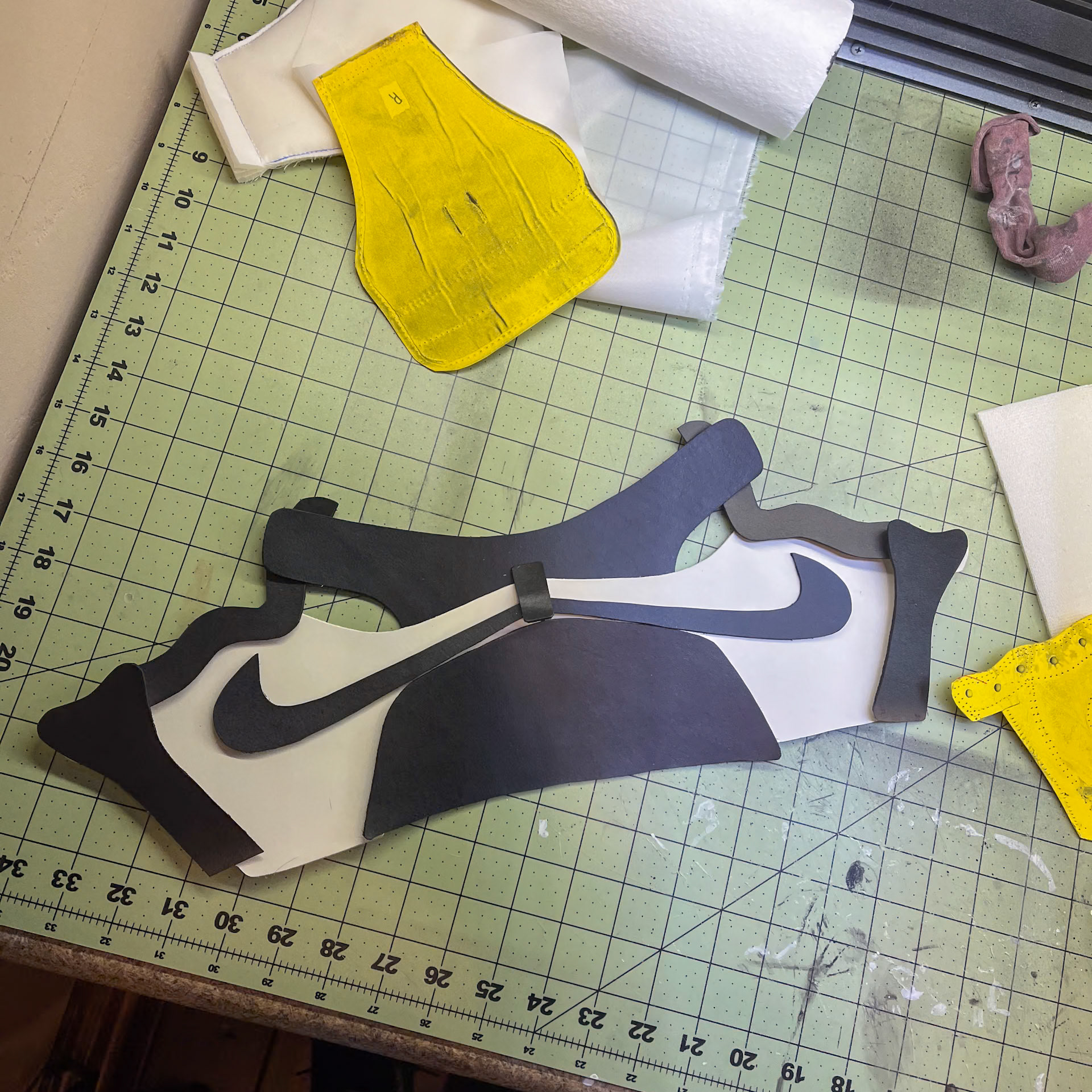 The first step in making a shoe is to acquire a pattern. The pattern is a 1:1 template from which every panel of the shoe is derived. There are a two main ways to obtain a pattern - purchase one from an online retailer, or cut apart a shoe and scan the pieces yourself. In my case, I wanted to construct a 1985 Air Jordan 1 true to the original cut, and chopping up an original pair wasn't really on the table. I sourced my pattern from MaxHanke.com, who offers Air Jordan 1 patterns scanned from original pairs. For my first pair, I used his size 12 scans from an original pair of 1985 blue metallics. Max's website and YouTube channel have been a great inspiration and an unparalleled resource in constructing my own pair from scratch.