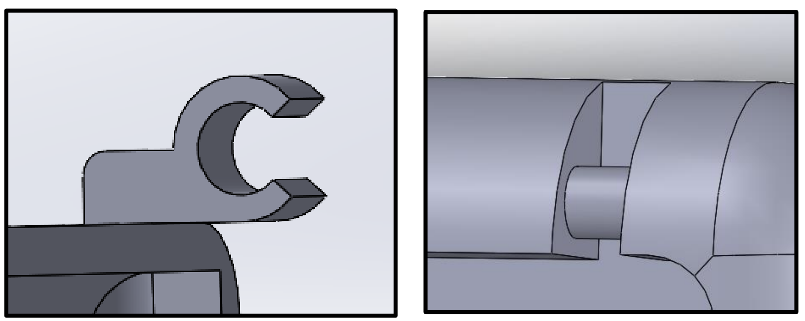 The main design challenge was in the interlocking mechanism. I knew I wanted to use a hinge of some sort, but wasn’t sure exactly how to go about constructing it. I thought about making the hinge span the entire top of the body but decided to go with two separate hinges to match the reference material more closely. It may have been useful to look into some preexisting snap-hinges on an open-source CAD library such as Thingiverse, but I figured I would try to design my own given the relative simplicity of the mechanism.